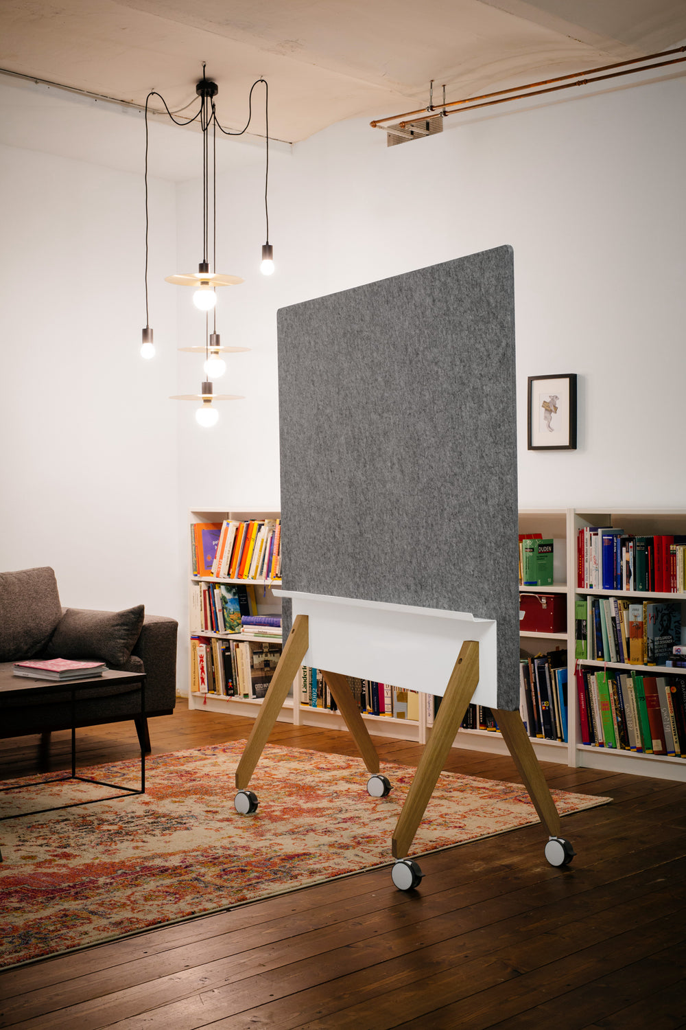 Immer gut für einen Perspektivwechsel - die Pinnwand Post and Pin aus Polyestervlies reagiert auf jede Änderung im Team. Mobil, leicht und flexibel. Reicht ein Board für die gesammelten Ideen nicht aus? Zusätzliche Boards schaffen mehr Platz - durch unseren innovativen Klemmbeschlag des Basiselementes kann ein Board schnell gegen ein anderes ausgewechselt werden. Wird Post and Pin nicht benötigt, dient es als formschönes Moodboard, temporärer Sichtschutz oder Trennwand mit leicht akustischer Wirkung.