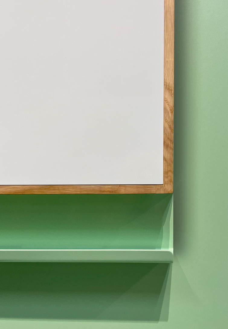 Statisch und doch flexibel. Mit ihren unterschiedlichen Breiten bieten die Wall Paper Tafeln viel Spielraum für die individuelle Gestaltung. Die emaillierte, weiße Metalloberfläche ist mit Whiteboard-Markern beschreibbar und magnethaftend. Die Beschriftung kann trocken und rückstandsfrei abgewischt werden. Die praktische Ablage unter dem Board kann auf Wunsch in unterschiedlichen RAL Tönen pulverbeschichtet werden.