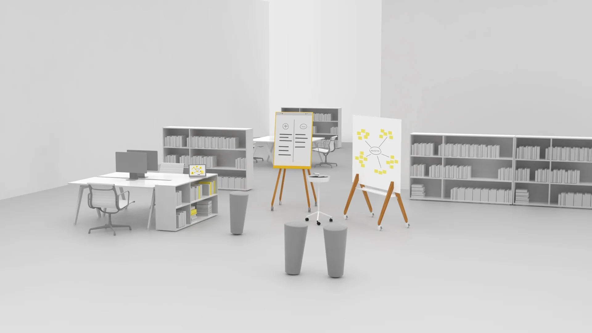 Meetings or discussions between teams often arise spontaneously, leaving employees with the problem that no free meeting room is available. Our flexible tools on <tc>Castors</tc> They can help here - simply rolled into the team office, they are immediately available and prevent frustration in the team.