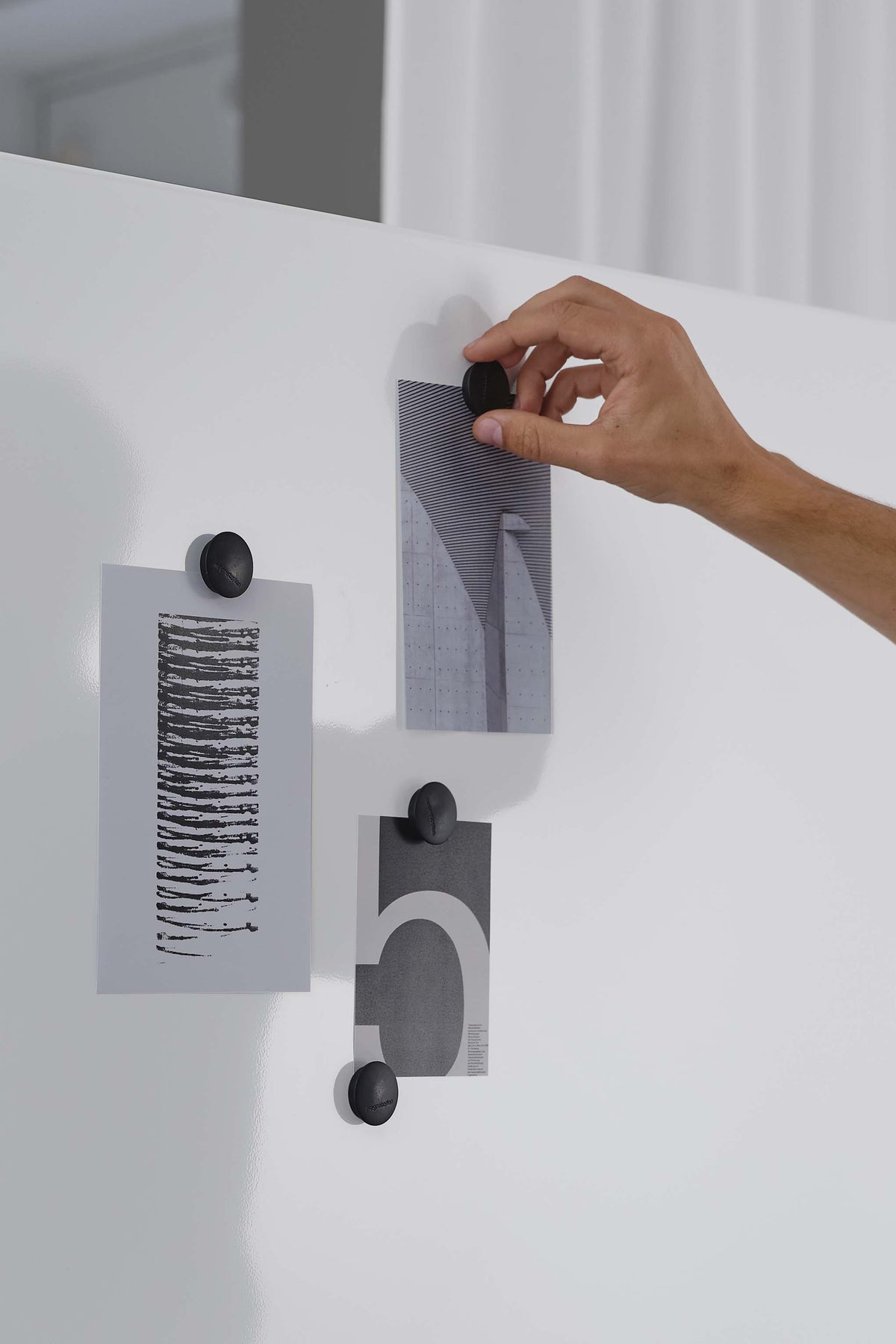 Only use suitable high-quality board markers, we recommend Lumocolor from Staedtler. Other waterproof pens are not made for Whiteboards and make cleaning more difficult. To avoid scratches, lift and move the magnets, do not move them on the board.
