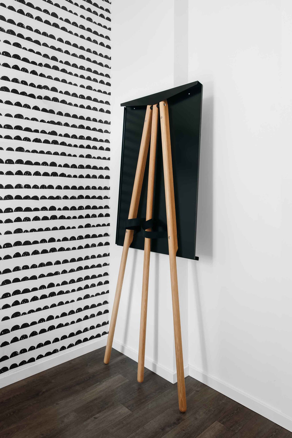 Flipchart Foldable mit Beinen aus Eiche  lehnt zusammengeklappt an der Wand