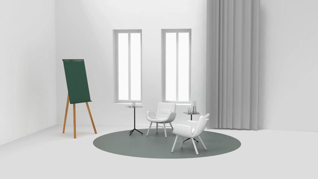 Ziel des Coachings ist grundsätzlich, Menschen in ihrer beruflichen oder privaten Entwicklung zu begleiten und zu unterstützen. Diese Gespräche erfordern einen Raum, der mit seiner angenehmen Atmosphäre Vertraulichkeit schafft und einlädt sich zu öffnen. Zwei bequeme Sitzgelegenheiten, seitlich platzierte Beistelltische und ein Flipchart zum Erläutern von Methoden und Prozessen sind hierzu ideal.